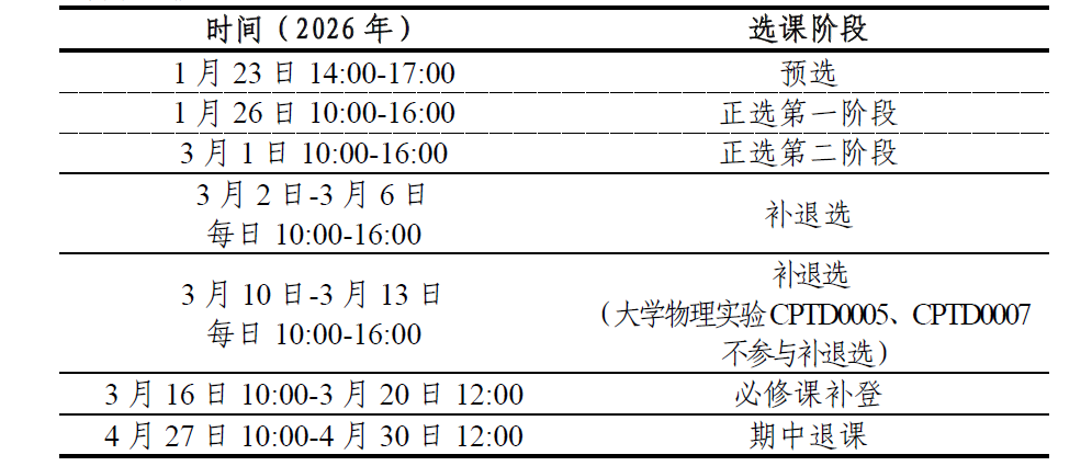 关于2025-2026学年第二学期本科生选课的通知