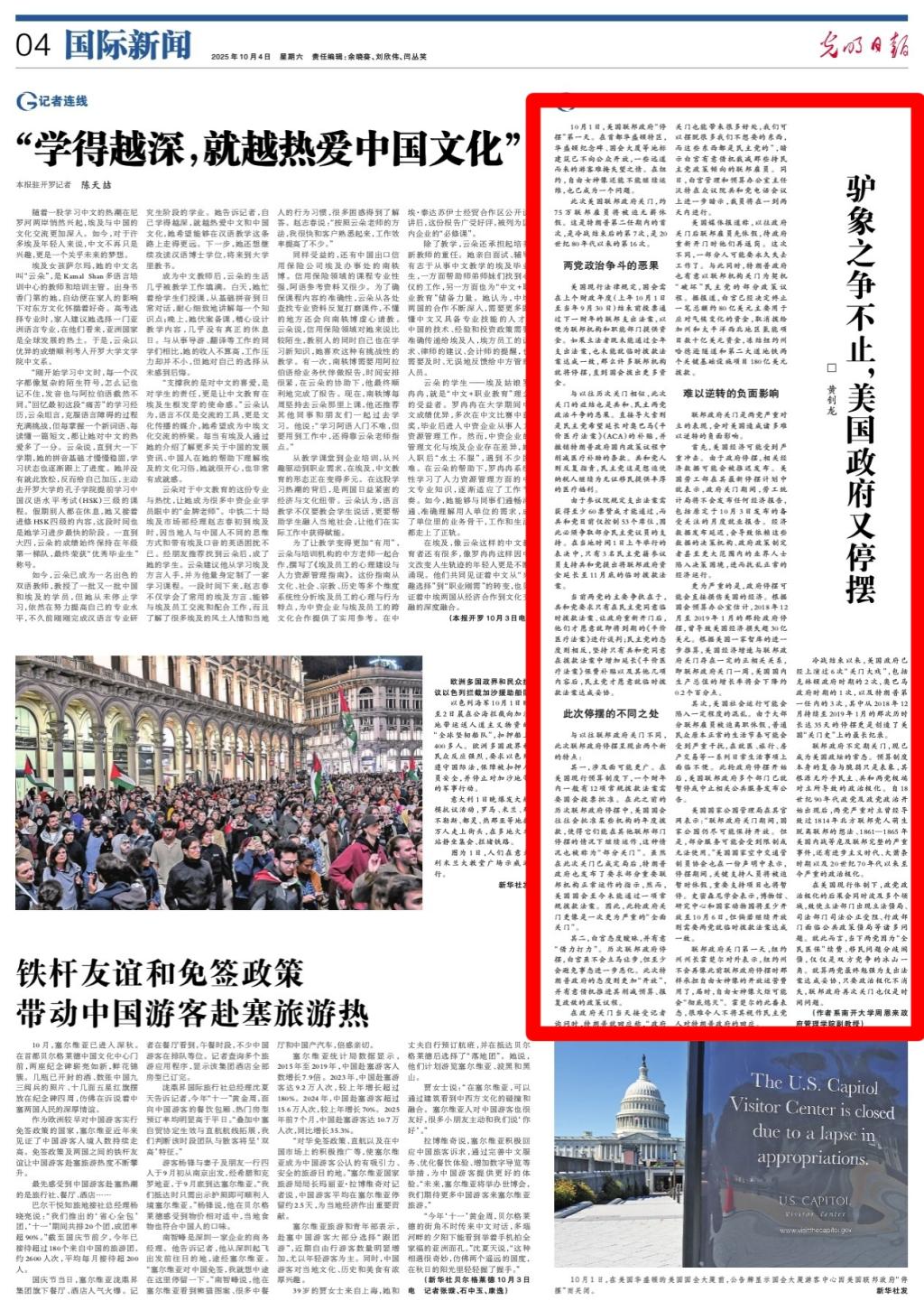 联邦政府关门是两党严重对立的表现,会对美国造成诸多难以逆转的负面影响。