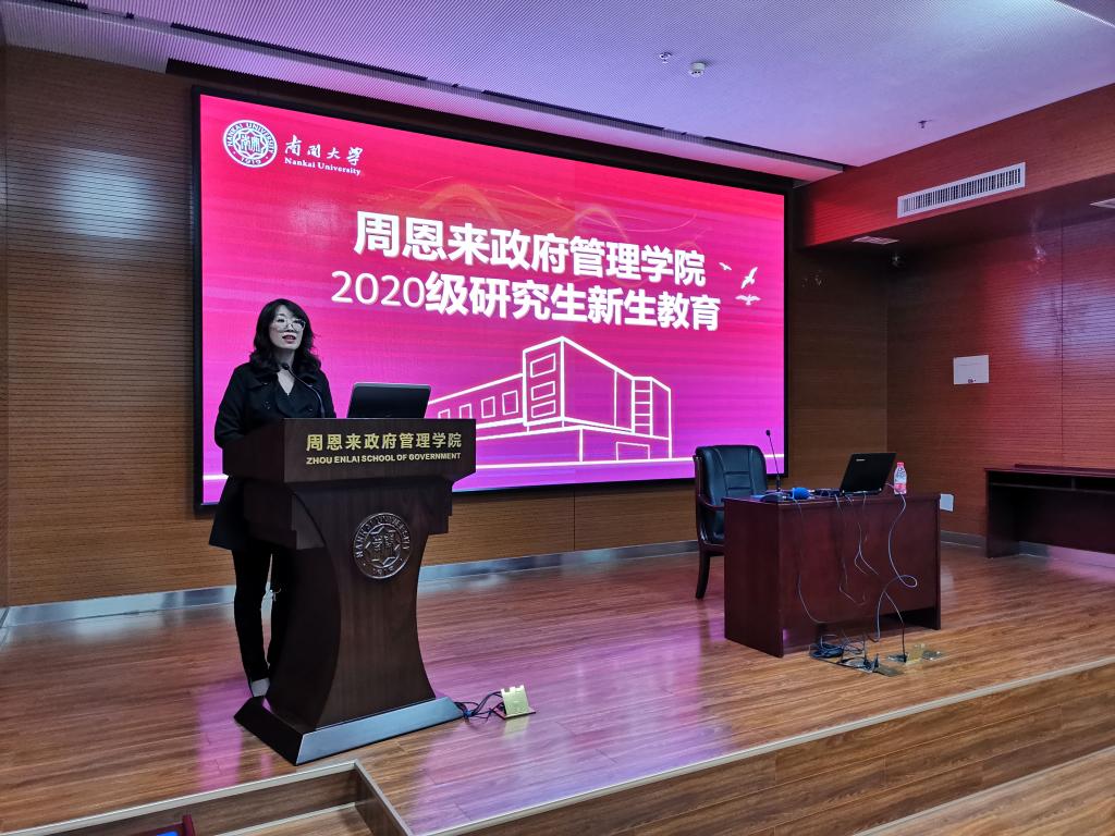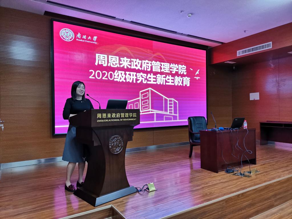 宋媛在新生适应性教育中勉励新生要弘扬求实创新精神,维护学术道德,规范学术行为,诚实做人,踏实做事,扎实做学问;研究生辅导员王若瑶鼓励新生积极适应环境,加强朋辈交流,快乐开启研究生生活。