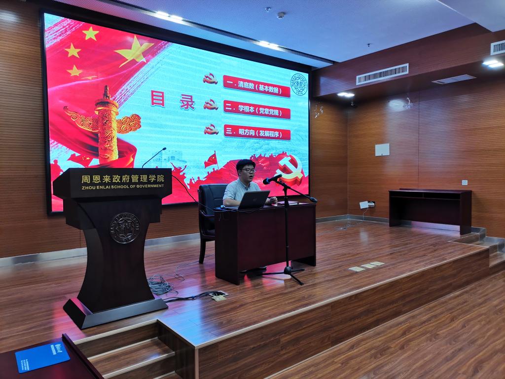 殴喜乐在党课及入党程序培训中从“我是谁”,“我是什么样子的人”这两个问题出发,结合新冠疫情期间共产党员发挥先锋模范作用,鼓励新生多读党章,学习党的理论知识,积极向党组织靠拢,为实现中国梦贡献青春和力量。