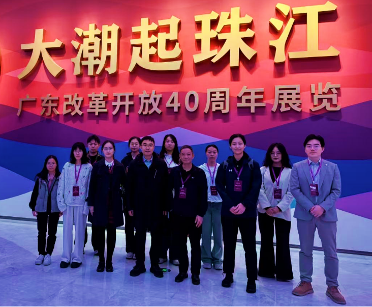2月1日清晨,团队首站来到“大潮起珠江——广东改革开放40周年展览馆”,在三千多件珍贵展品与多媒体技术营造的沉浸式场景中,开启对改革开放历程的深度探寻。从复刻的“中英街”场景感受特区建设初期的探索与突破,通过全息投影沙盘直观了解粤港澳大湾区的宏伟布局,师生们深刻体会深圳“从‘杀出一条血路’到‘走在前列’”的发展脉络,感受广东改革开放重大决策、重大突破的壮阔历程与丰硕成果。