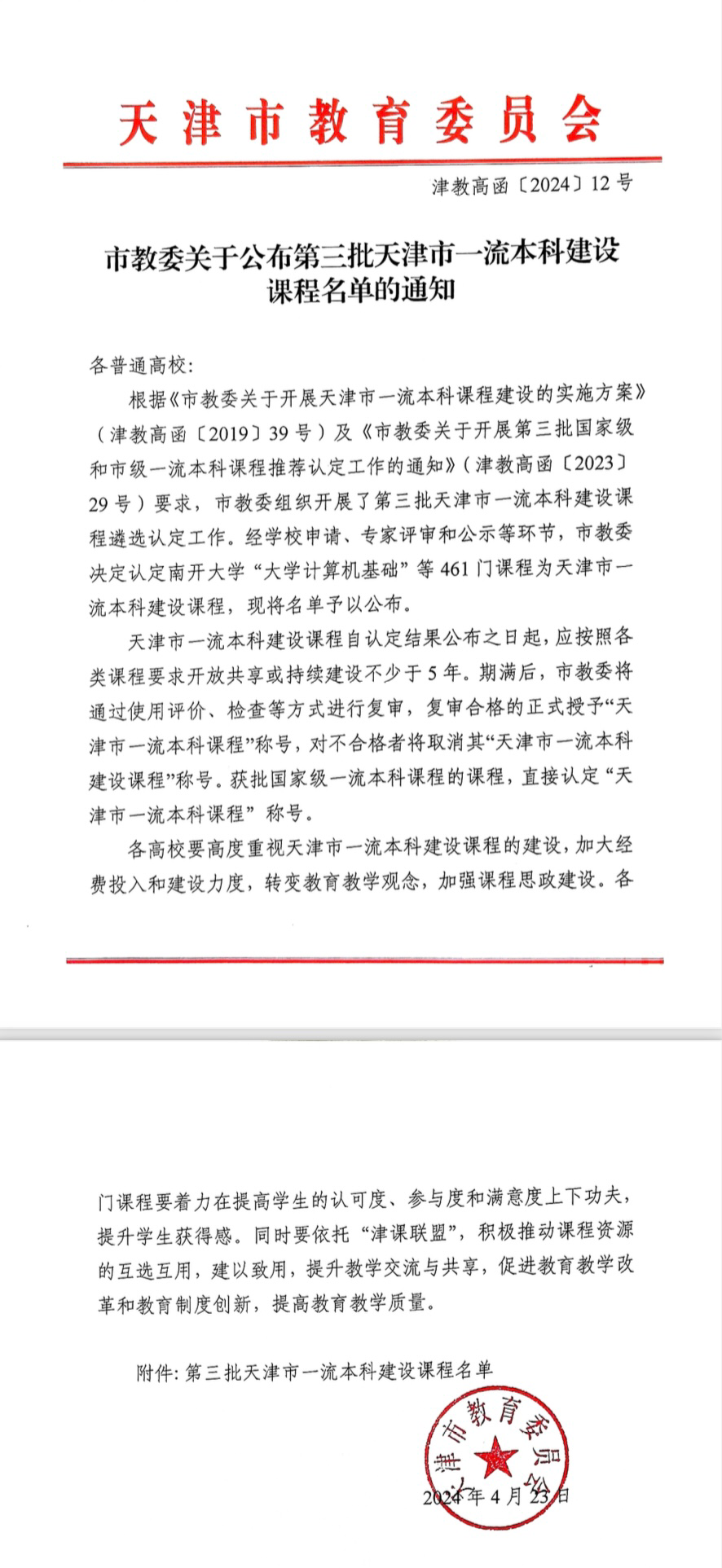 该课程于2019年获评天津市一流本科建设课程,2021年获评台湾a片