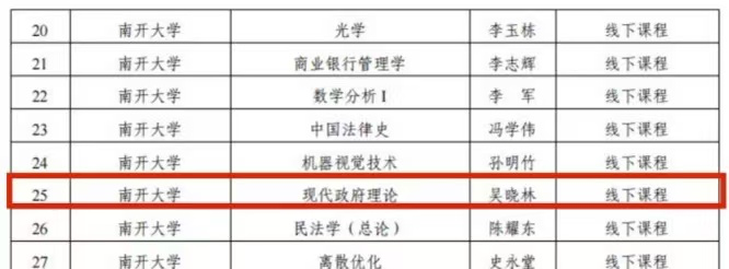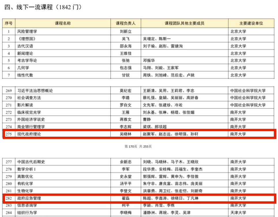共有2门课程入选“国家级一流本科课程”,分别为吴晓林教授负责的《现代政府理论》、翟磊教授负责的《政府应急管理》。